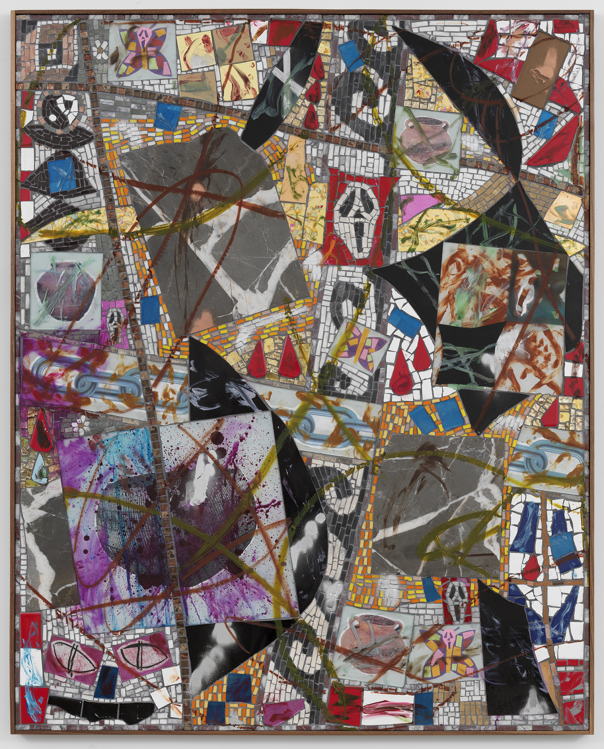 MARBLE, GLASS, CERAMIC, STONE, SPRAY ENAMEL, OIL AND ACRYLIC ON PANEL IN ARTIST FRAME